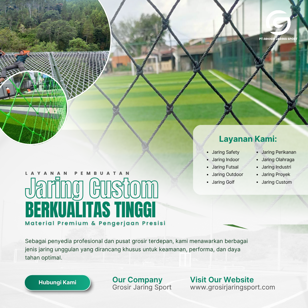 Ingin solusi jaring berkualitas tinggi yang memenuhi berbagai kebutuhan, mulai dari olahraga hingga proyek industri? Grosir Jaring Sport adalah pilihan tepat! Sebagai penyedia profesional dan pusat grosir terdepan, kami menawarkan berbagai jenis jaring unggulan yang dirancang khusus untuk keamanan, performa, dan daya tahan optimal.